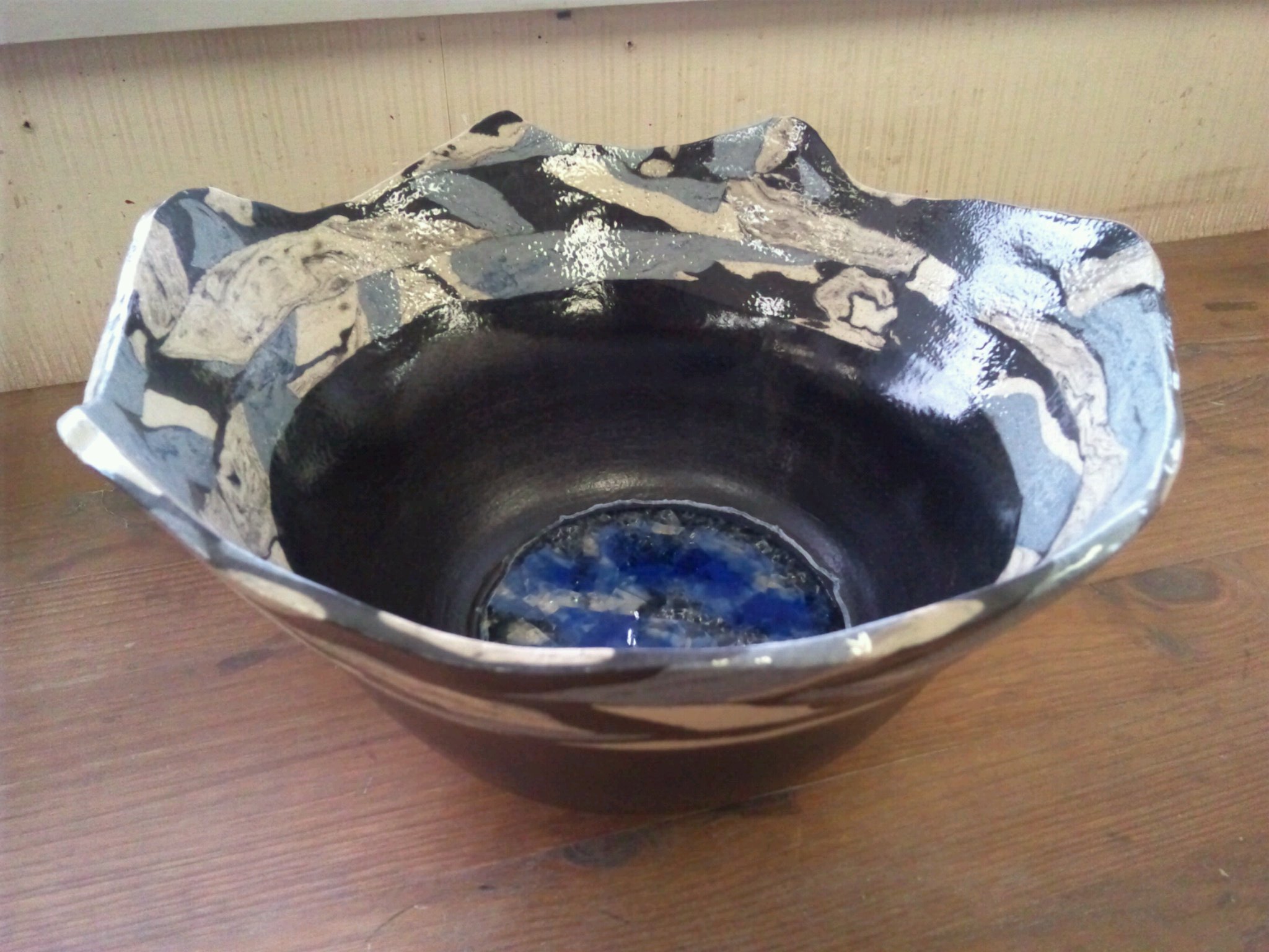 やるからには・・・っと、二ヶ月半筋肉痛になりながら、考えては引いて。。引いては壊して。。やっと出来た黒鉢・・・よく眺めてみると実に「オレっぽい」・・・